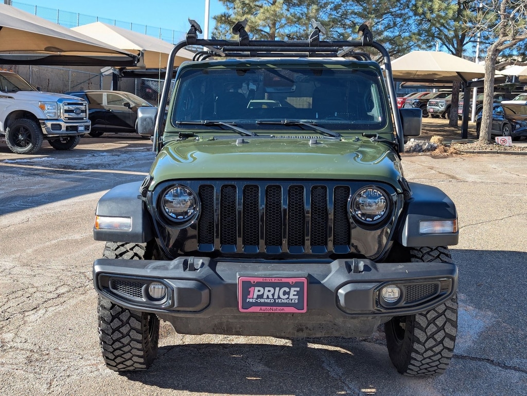 This outstanding example of a 2021 Jeep Wrangler Willys is offered by AutoNation Chrysler Jeep West. This Jeep includes: ENGINE: 3.6L V6 24V VVT UPG V6 Cylinder Engine Gasoline Fuel *Note - For third party subscriptions or services, please contact the dealer for more information.* This Jeep Wrangler Willys has a tough exterior complemented by a well-designed interior that offers all the comforts you crave. Equipped with 4WD, this Jeep Wrangler Willys gives you added confidence to tackle the surface of any path you take. The Wrangler Willys has been lightly driven and there is little to no wear and tear on this vehicle. The care taken on this pre-owned vehicle is reflective of the 34,122mi put on this Jeep.